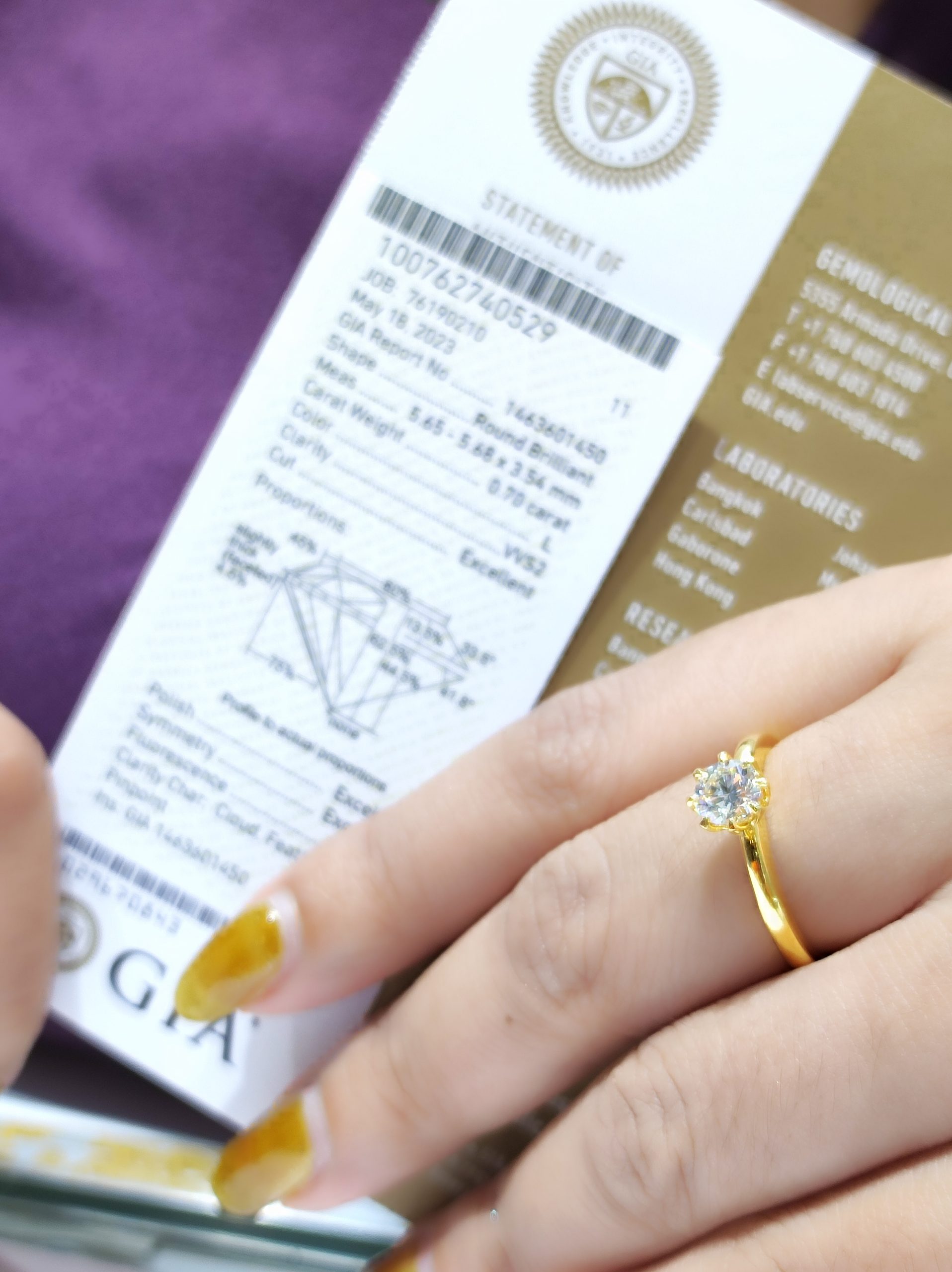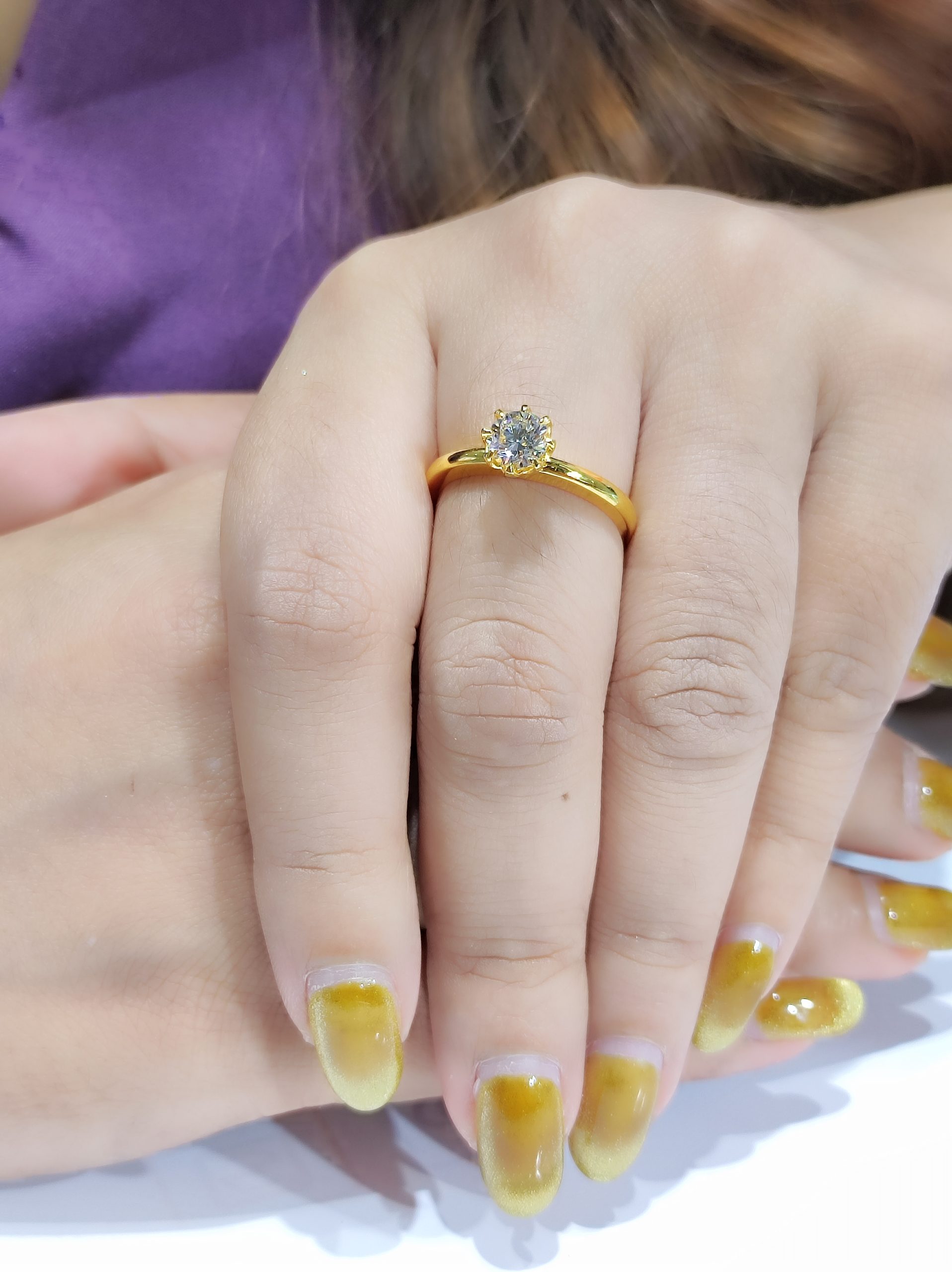 တလက်လက်တောက်ပနေတဲ့ GIA စိန်တစ်ပွင့် လက်စွပ်လေးကို စွန်ချက် ၈ချက်နဲ့ အလှဆင်ထားတဲ့ ဘယ်တော့မှ မရိုးသော လက်စွပ် ဒီဇိုင်းလေးနဲ့ မိတ်ဆက်ပေးပါရစေရှင်…စိန်တစ်ပွင့်တည်းနဲ့ ပုံဖော်ထားတဲ့ တန်ဖိုးရှိလှသော ရတနာလေးမို့လို့ proposal ring အနေနဲ့ ကိုယ် မြတ်နိုးတန်ဖိုးထားရတဲ့ အမျိုးသမီးလေးအတွက် ရွေးချယ်သင့်သော ဒီဇိုင်းလေးဆိုလည်း မမှားပါဘူးရှင်