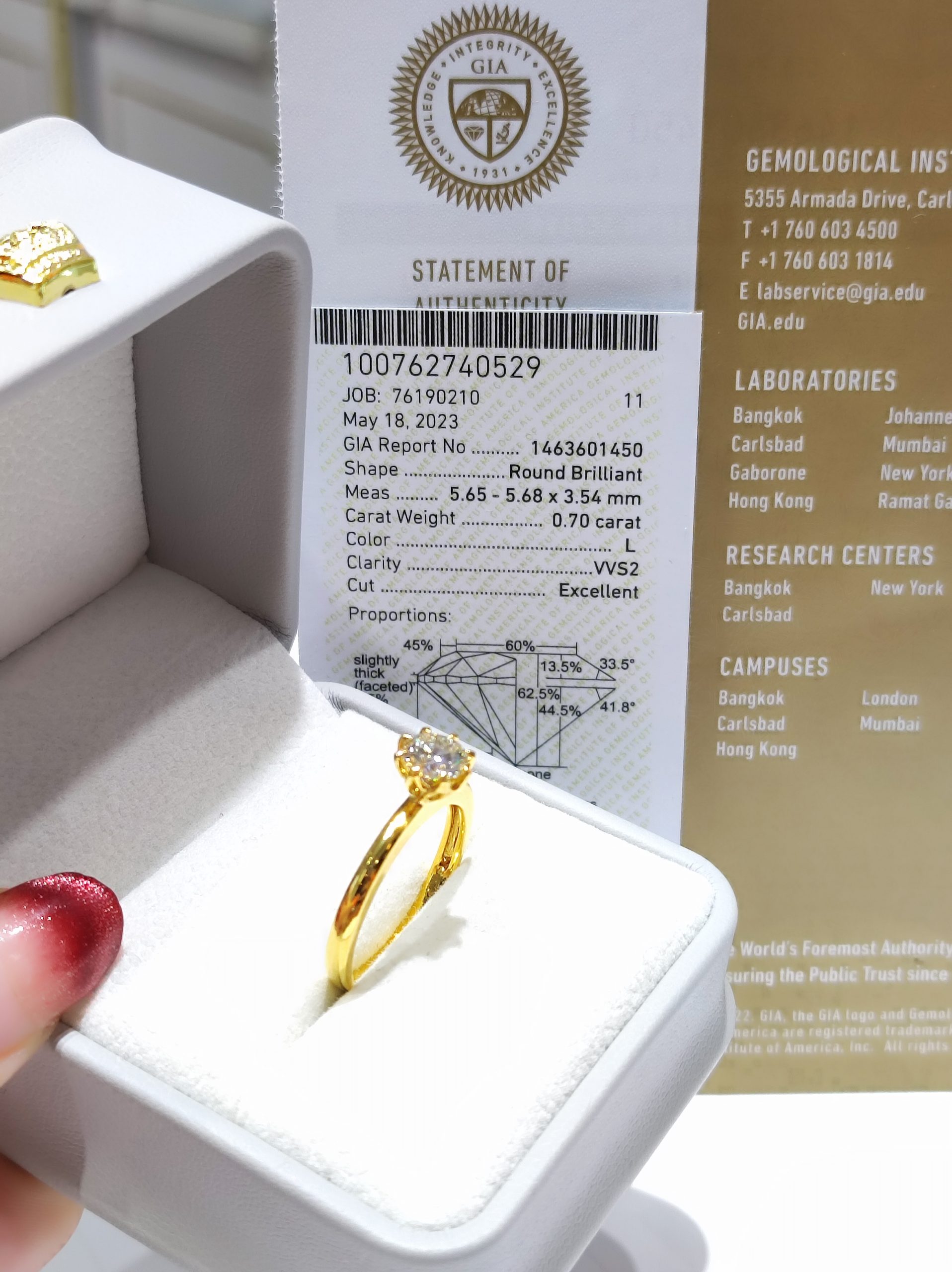 L color, VVS2 , 3 Excellent , Non Fluorescence